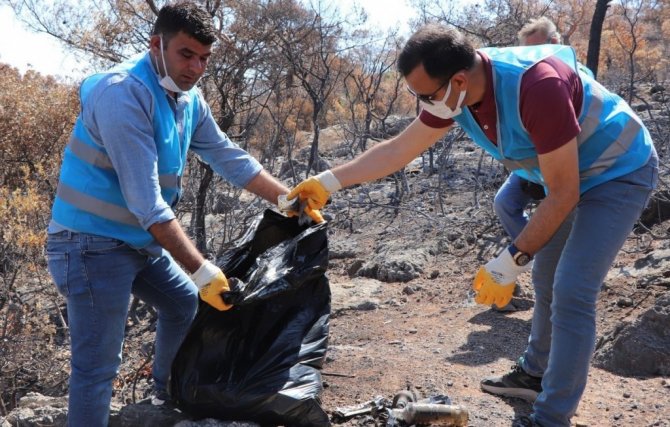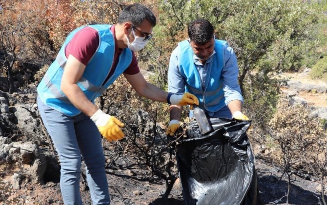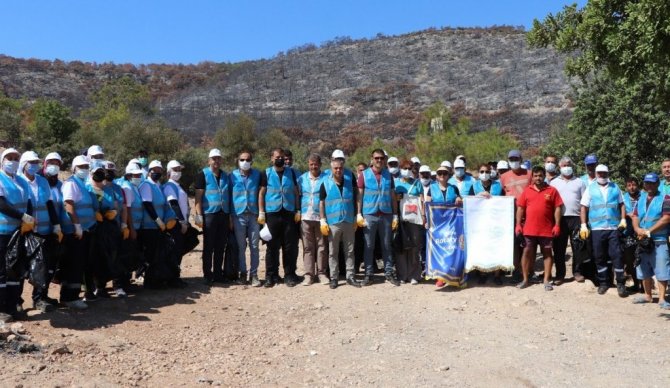 Mersin'in Silifke ilçesine bağlı Boğsak Mahallesi'nde 29 Temmuz günü çıkan yangında zarar gören ormanlık alanda çevre temizliği düzenlendi.