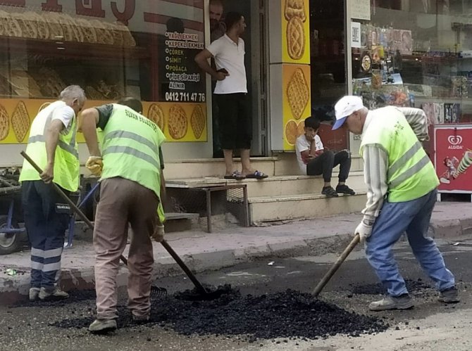 Diyarbakır'ın Silvan İlçe Belediyesi Fen İşleri Müdürlüğü ekipleri, ana caddelerdeki çukur oluşan, bozulan ve aşınan yollara müdahale ediyor.