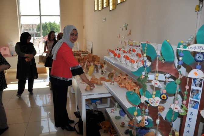 Simav Hükümet Konağı Salonu’nda gerçekleştirilen yıl sonu mezuniyet töreninde, sergilenen el becerisi eserler göz doldurdu.