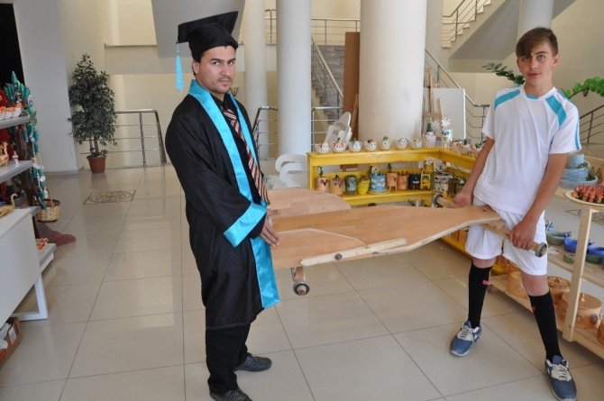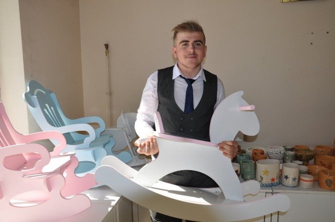 Mobilya bölümünden mezun olan Ali Sarıkaya, eskiden bisiklet ve motorların olmadığı zamanlarda çocukların oynadığı tahta araba ürettiğini ifade etti. Sarıkaya, “Okulumuzun mobilya bölümünde bir şeyler öğrendik, güzel işler yaptık. İnşallah ileride kendi atölyemi de açabilirim” diye konuştu.