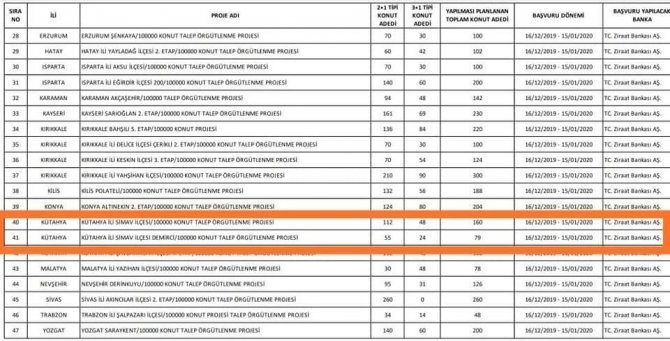 Simav Ak Parti İlçe Başkanı Ahmet Kulat “ Cumhurbaşkanı Recep Tayyip Erdoğan önderliğinde, her yıl 100 bin sosyal konut projesi kapsamında, ilçemize 112 adet 2+1, 48 adet 3+1 toplam 160 konut yapılmasına, Demirciköy beldesine ise TOKİ projesinden 55 adet 2+1, 24 adet 3+1 toplam 79 konut yapımına karar verilmiştir. Başvurularımız sırasında emeği geçenlere teşekkür ediyoruz. Simavlı vatandaşlarımıza hayırlı olsun” dedi.