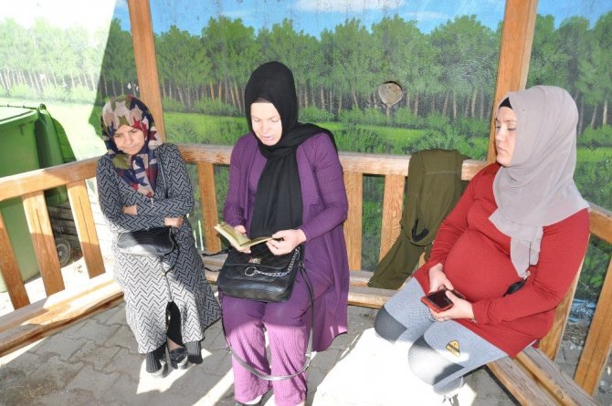 Sınavın başlamasıyla birlikte çocuklarını, eşlerini ve yakınlarını bekleyenler dua ederek, getirdikleri Kur’an-ı Kerim’i okudular.