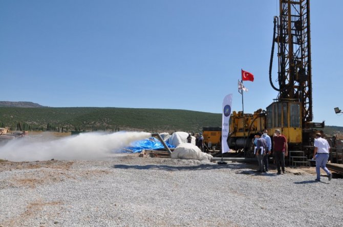 İki kuyudan çıkartılan termal kaynak sularının Simav Organize Sera Bölgesi'nde kullanılacağını belirtildi.