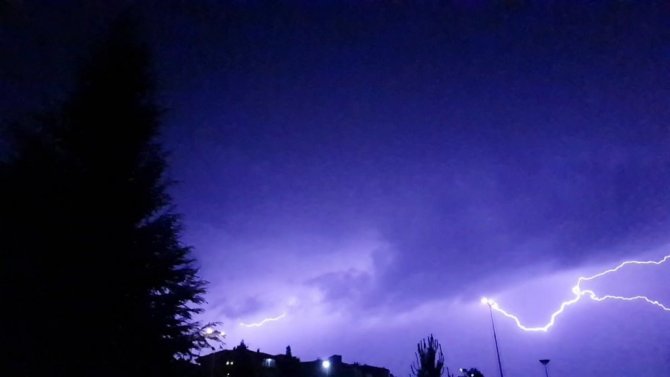 Karabük'te etkili olan aşırı sıcakların ardından akşam saatlerinde sağanak yağış etkili oldu. Yağmurla birlikte gök gürültüsü gecenin sessizliğini bozarken, şimşekler de gecenin karanlığını aydınlattı.