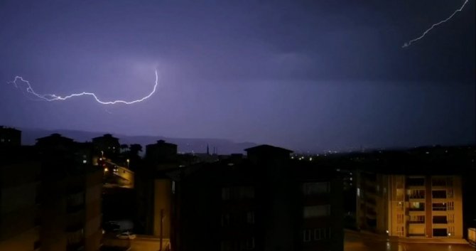 Kent genelinde etkili olan şimşekler ortaya güzel görüntüler çıkardı.