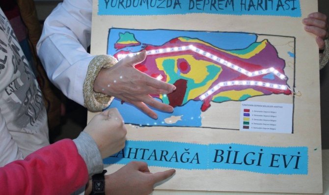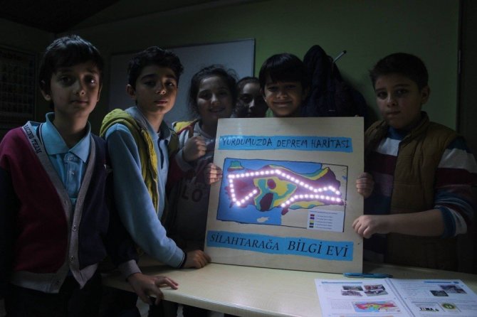 Bu kapsamda Simurg Silahtarağa Bilgi Evi öğrencileri, sosyal bilgiler dersinde doğal afetler konusunu ve Türkiye’de depremin yıkım etkisini ve bölgelere göre risk dağılımını led ışıklı deprem haritasıyla öğrendi.Depreme ve doğal afetlere karşı alınacak önlemler konusunda bilgi sahibi olan Simurglu öğrenciler, depremden korunmak için zemin araştırılması yapılmasını ve yerleşim alanlarının depreme dayanıklı olan sağlam zeminler üzerine kurulması konusunda bilgi sahibi oldu.