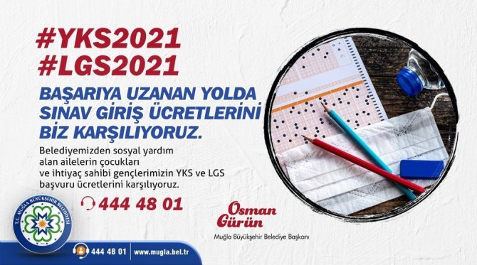 Yükseköğretim Kurumları Sınavı (YKS) 26 Haziran, Liseye Geçiş Sınavı (LGS) 6 Haziran tarihinde yapılacak. Pandemi döneminde ihtiyaç sahiplerine verdiği destekle dikkat çeken Muğla Büyükşehir Belediyesi YKS ve LGS (LGS ücretli olduğu takdirde) 2021 başvuru ücretlerini karşılayacağını duyurdu. Muğla Büyükşehir Belediye Başkanı Dr. Osman Gürün YKS ve LGS sınavına girecek gençler için yeni bir desteğe hayata geçirdiklerini sosyal medya hesabından paylaştı.