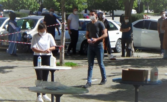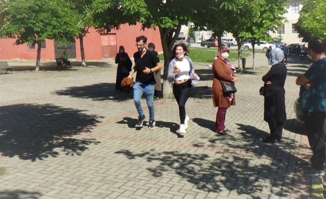 Öğrenciler, sosyal mesafe kuralına uyarak maskelerini takarak sınav salonlarına giriş yaptı.
