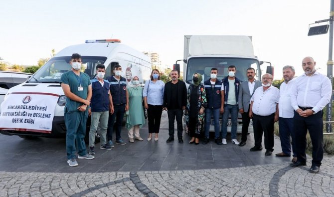 Sincan Belediyesi yangın bölgesinde can dostları da unutmadı. Muğla'da yangında yaralanan ve bakıma muhtaç olan hayvanların tedavisi amacıyla veteriner hekim, 4 personel, tam donanımlı hayvan ambulansı ve mama Muğla'ya gönderildi. Hayvan ambulansı yardımıyla ekipler yaralı canlara anında müdahale ederek onları hayata bağlayacak.