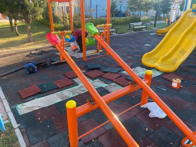 Ayrıca ekipler parklarda eskiyen, yıpranan, kırılan çocuk oyun gruplarında da onarma ve yenileme çalışması yürütüyor. Oyun gruplarında bulunan kırık ekipmanlar tamir edilerek yeni görünümlerine kavuşuyor.