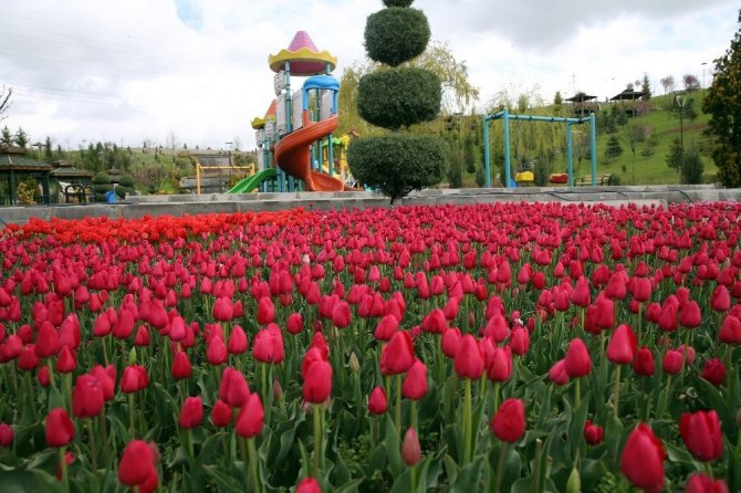 Sincan Belediyesi tarafından ekilen lale soğanlarının çiçek açması ile ilçe rengarenk oldu.