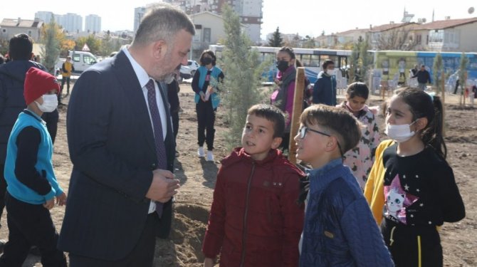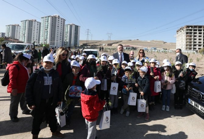 Sincan'da ilkokul öğrencileri "Milli Ağaçlandırma Günü" kapsamında düzenlenen ağaç dikme etkinliğine katıldı.