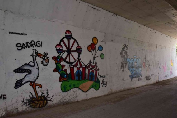 Sosyal farkındalık içeren simgeler, doğal şehri anlatan simgeler grafiti sanatı ile birleştirilerek ilçedeki duvarları, kullanılmayan alanları süsleyerek görsel güzellik oluşturuyor. Sındırgılı grafiti sanatçısı İdris Sadıç tarafından duvarlara işlenen resimler fotoğraf karelerini süsleyecek fonlar oluşturuyor. Belediye ve gençler işbirliği ile gerçekleştirilen çalışmalara mahalle muhtarları da destek veriyor.