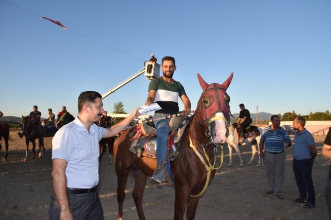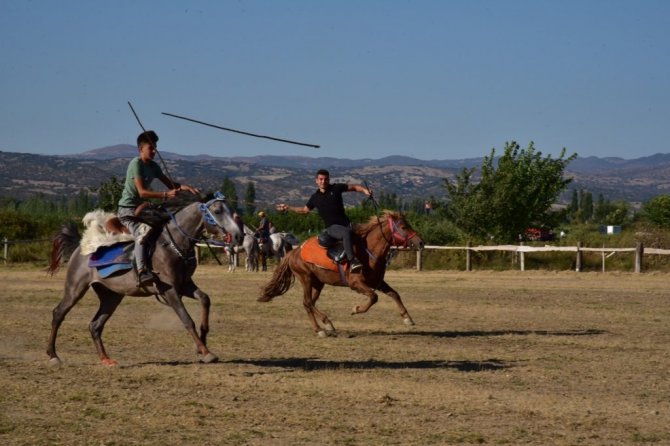Balıkesir'in Sındırgı ilçesinde cirit ve değnek yarışması nefes kesti.