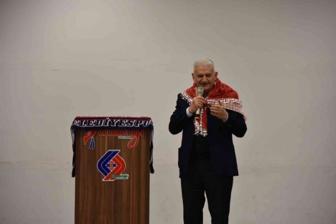 Yıldırım konuşmasında " Değerli kardeşlerim Ekrem, soyadı Yavaş ama Yıldırım gibi çalışıyor. Bakan olduğum zaman bizim Hüseyin Çelik vardı. Milli Eğitim Bakanı. Bana takılırdı. Konuşma yaparken salona siz Binali abiye bakmayın kendi yavaş konuşur ama soyadı gibi iş yapar derdi. Elhamdülillah Cumhurbaşkanımızın liderliğinde 20 yıldır milletimizin emrinde dağ gibi sorunları dağ gibi hizmetlere dönüştürerek bugünlere geldik. İnşallah bundan sonrada aynı azimle çalışacağız. Milletimizin duası ve desteği arkamızda olduğu sürece proje yapmaya gayret edeceğiz. Başkan da maşallah Sındırgı için bütün imkânları zorluyor. Her kapıyı çalıyor, herkesi seferber ediyor. Helal olsun böyle olmak lazım yapmak lazım. Ağlamayana meme yok derler. Bizi de geldik böyle ağırladı bir gün. Bir çevre yolu bir başka yol, Balıkesir Sındırgı yolu sırtımıza sardı. Olsun bugün bak yeni sipariş var orada. Sındırgı Akhisar yolu tamam, Simav yolunun müjdesini bekliyoruz. Rahmetli Özal. Allah rahmet eylesin bu ülkeye güzel hizmetleri var. Bir sözünü hiç unutmam. Yapılan işler çikolataya benzer. Yenilir yutulur, unutulur, yenisi beklenir. Burada unutulmadığını görüyoruz. Yapılanı da söylüyorlar. Yenisini de sipariş ediyorlar. İşte Sındırgı'nın farkı bu." Dedi.