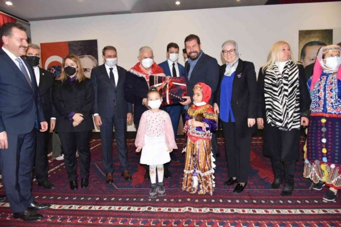AK Parti Genel Başkan Vekili Yıldırım'a Sındırgı'nın Dünyaca ünlü Yağcıbedir halısı hediye edildi.