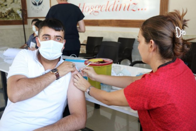 Suriye sınırındaki Şanlıurfa'nın Akçakale ilçesinde belediye çalışanları korona virüs aşısı oldu.