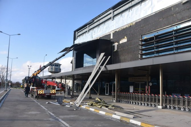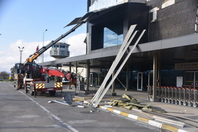 Geçen hafta yaşanan fırtınada zarar gören Sinop Havalimanı terminal binasında onarım çalışmaları devam ediyor.