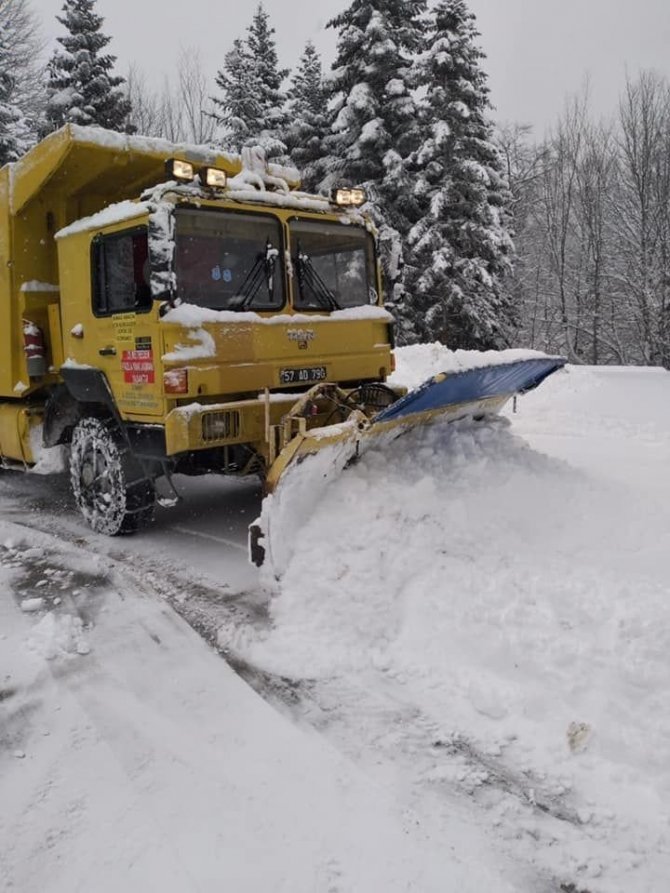 Yoğun kar yağışı nedeniyle Boyabat ilçesinde 5, Türkeli ilçesinde 33, Ayancık ilçesinde 71, Merkez'de 16, Erfelek ilçesinde 32 köy yolu kapalı. Ekipler kapalı yolları açmak için çalışmalarını sürdürüyor.