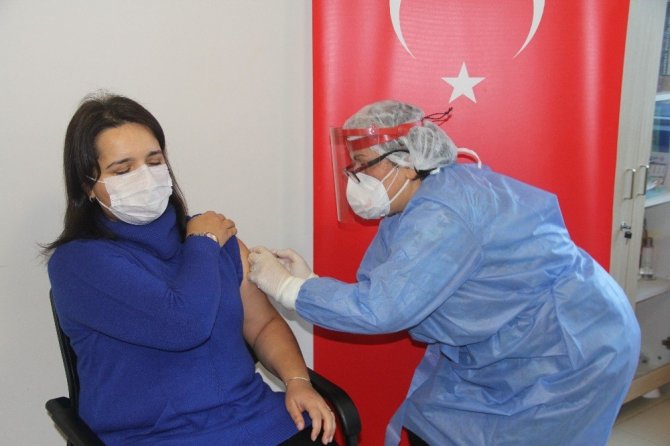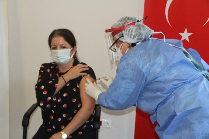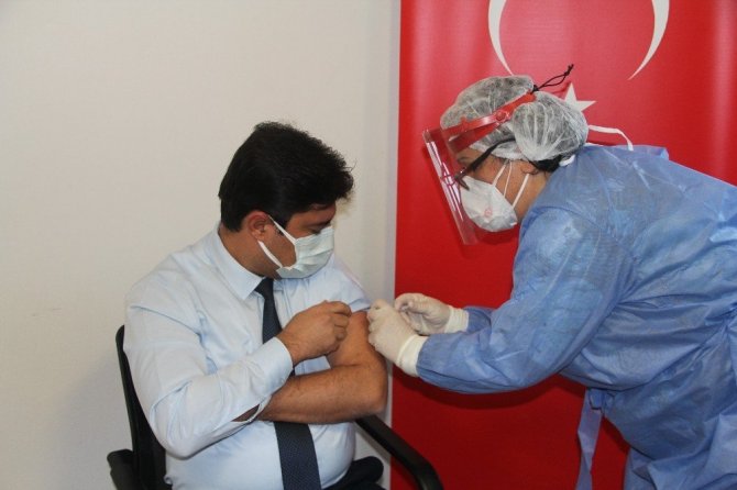 Aşının olmalarının sonra yaptıkları açıklamayı sonlandıran Reyhanlıoğlu ve beraberindekiler Atatürk Devlet Hastanesi'nde başlayan aşılamaya katılmak üzere müdürlükten ayrıldı.