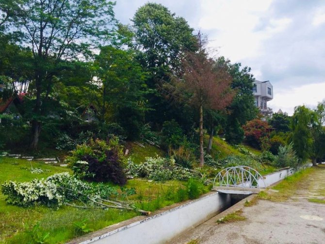 Sinop'ta Karakum açıklarında denizde meydana gelen hortum Sinop İl Özel İdaresi'ne ait Karakum Sosyal Tesisleri'nde bulunan ağaçları devirdi.