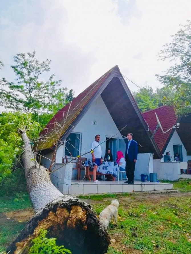 Sinop İl Özel Genel Sekreteri Yahya Çınkıl, "Şiddetli yağış ve rüzgarın oluşturduğu tahribatı yerinde incelemek ve tesislerimizde konaklayan ve büyük korku yaşayan misafirlerimize geçmiş olsun dileklerinde bulunmak üzere tesisimizi ziyaret ettik. Can kaybı ve yaralanmanın yaşanmadığı olayın ardından, devrilen ağaçlar Özel İdare ekiplerimiz tarafından kesilerek kaldırdı. Bugün sabah saatlerinde oluşan gök gürültülü sağanak yağış ve şiddetli rüzgar sebebiyle oluşan tahribatta Sinop'umuzu ve tesisimizi tercih eden tatilcilerimiz konaklayan misafirlerimizin herhangi bir yaralanma ve can kaybına yol açmaması bizi öncelikli olarak çok sevindirdi. Misafirlerimize bu kapsamda geçmiş olsun ziyareti gerçekleştirerek sıkıntı ve dileklerini sorduk. Tesisimizde oluşan hasar ve tahribatı en kısa sürede telafi ediyoruz. Bundan sonra olabilecek doğa olayları ile ilgili gerekli önlem ve tedbirlerin daha yüksek seviyeye çıkartılması ile ilgili olarak da çalışmalarımızı başlatmış durumdayız" dedi.