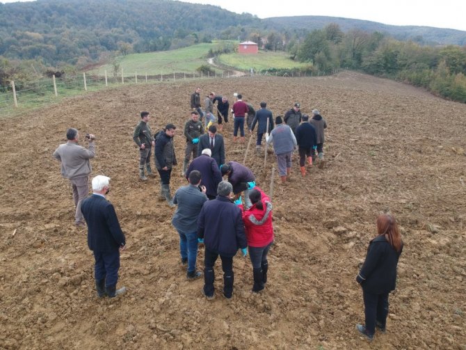 Sinop'un Erfelek ilçesinde "11 Kasım Milli Ağaçlandırma Günü'nde kestane fidanları toprakla buluşturuldu.