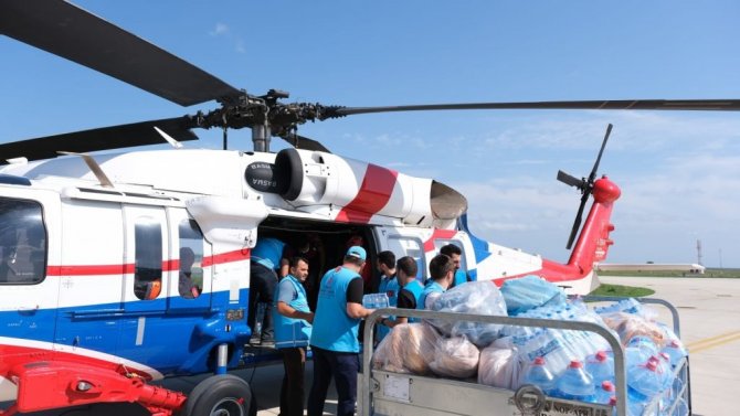 Sinop’ta ulaşımın sağlanamadığı bölgelere helikopterle yardım ulaştırılıyor