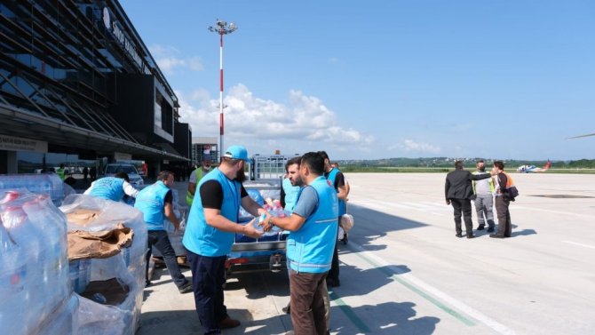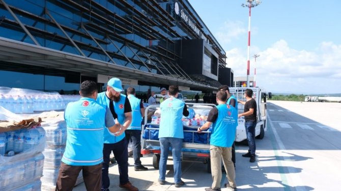 Türkiye Diyanet Vakfı görevlileri tarafından Sinop Havaalanından helikopterlere yüklenen su başta olmak üzere acil yardım malzemeleri ulaşıma kapalı bölgelerdeki selzedelere taşındı. Sinop Ayancık'ta yoğun yağışların meydana getirdiği sel nedeniyle ulaşıma kapalı köylere helikopterlerle yiyecek ve içecek ulaştırılıyor.