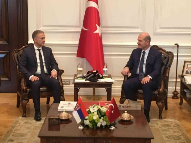 İçişleri Bakanı Süleyman Soylu, Sırbistan Başbakan Yardımcısı ve Savunma Bakanı Nebojsa Stefanoviç ile makamında bir araya geldi. Stefanoviç şeref defterini imzaladıktan sonra iki bakan günün anısına fotoğraf çekildi. Stefanoviç'e yaptığı nezaket ziyaretinden ötürü teşekkür eden Bakan Soylu, "Kendisini ülkemizde görmekten dolayı çok büyük bir onur duyuyoruz. Kendisiyle