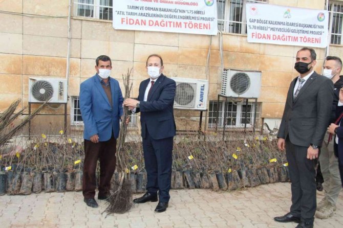 Konuşmaların ardından çiftçilere fidanları dağıtıldı.