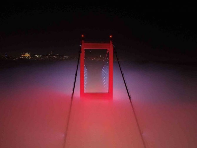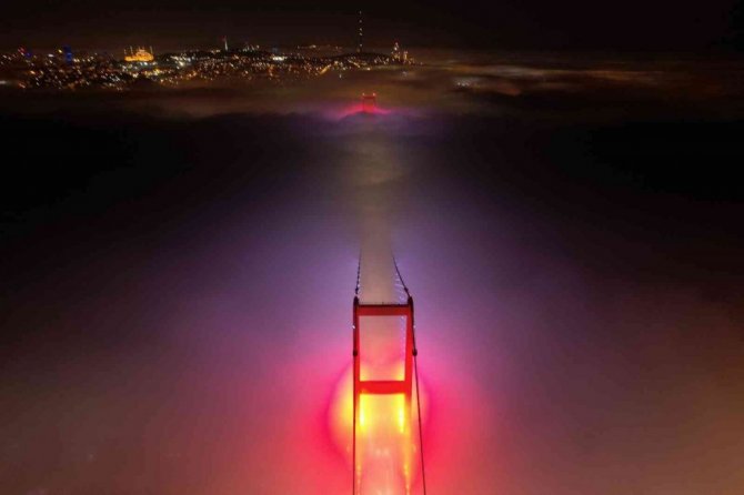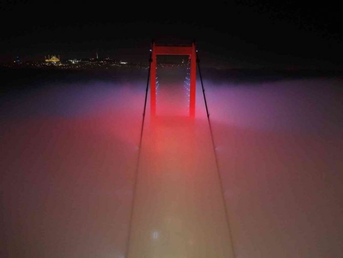 Etkili olan sis 15 Temmuz Şehitler Köprüsü'nde adeta kartpostallık görüntüler oluşturdu. 15 Temmuz Şehitler Köprüsü'nün sis bulutu altında adeta kaybolduğu anlar drone ile görüntülendi.