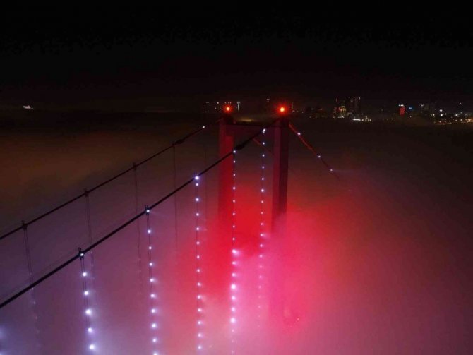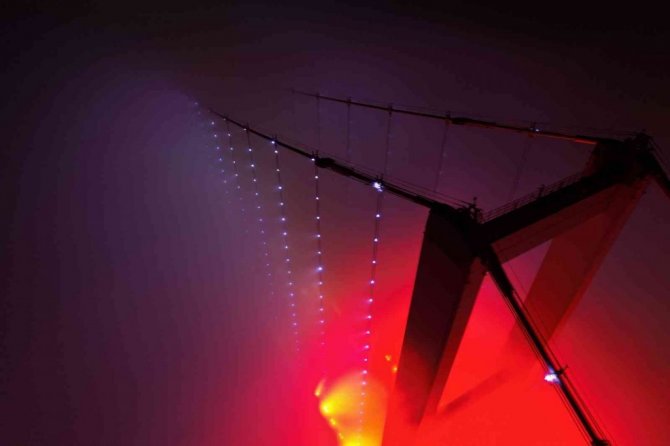Köprünün ışıkları ve sis ile beraber ortaya eşsiz görüntüler çıktı.