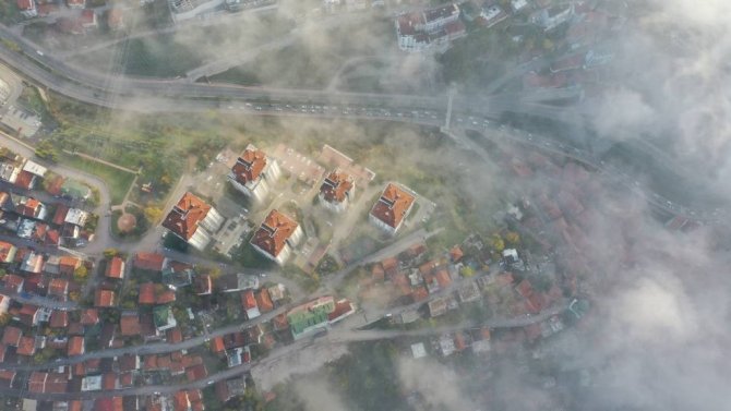 Kocaeli'de yaklaşık 1 hafta etkisini gösteren sis, sabah ve akşam saatlerinde de devam etti. Gökyüzünü kaplayan bulutların oluşturduğu eşsiz manzara da görenleri kendine hayran bıraktı. Sis bulutları zirvelerde görsel şölen sunarken, bulutların adeta dans eden görüntüsü ise havadan drone ile görüntülendi.