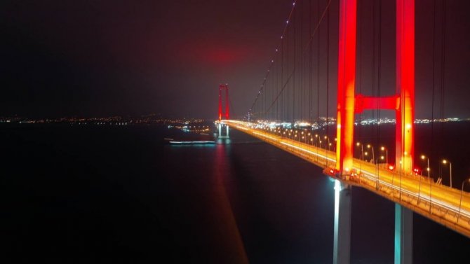 Öte yandan Osmangazi Köprüsü'de ışık ışıl görüntüsü ile dikkat çekti.