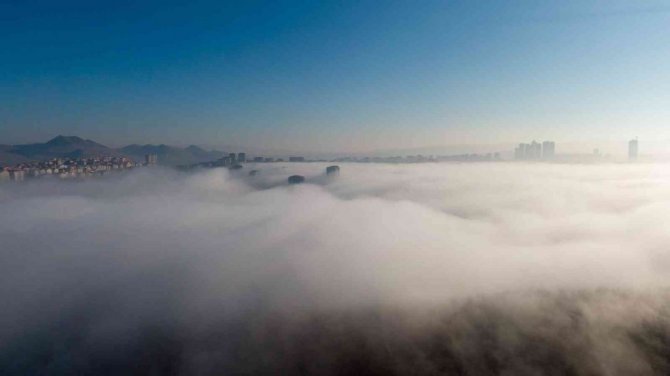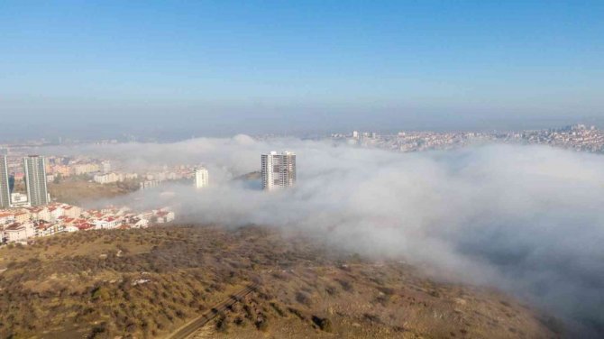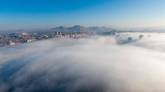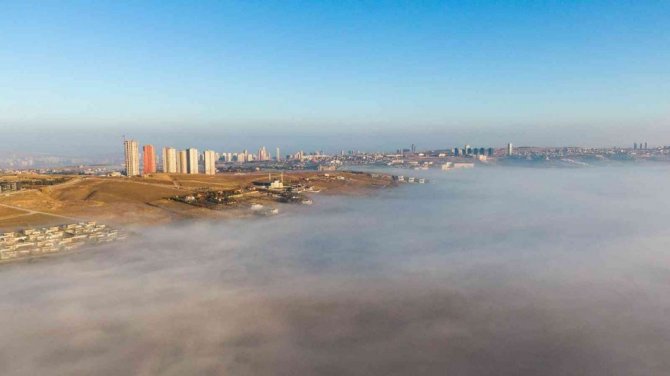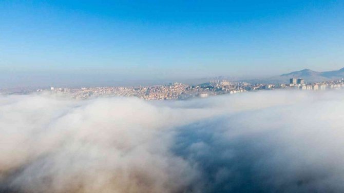 Ankara'da sabah saatlerinde oluşan sis bulutu, kentin üzerini yorgan gibi örtüyor.