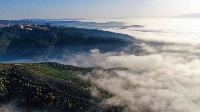 Kocaeli ve ilçelerinde sabah saatlerinde sis etkili oldu. Kentin tamamı sis ile kaplanırken, sürücüler olumsuz etkilendi. Havadan çekilen görüntülenen Kocaeli'nde, ortaya muhteşem manzaralar çıktı. Kentin merkezi sis ile kaplanırken, yüksek kesimlerde ise tam tersi görüntüler yaşandı. Feribot seferlerinin de iptal olduğu Kocaeli'nde, havadan çekilen görüntüler nefes kesti.