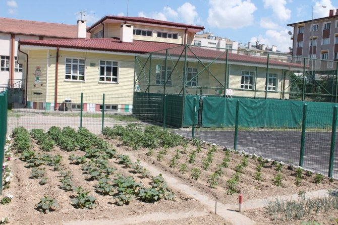 Gelecek nesillerin toprakla haşır neşir olması ve tarımın öneminin farkına varması amacıyla oluşturulan "organik tarım çalışmaları" köşesine anaokulu öğrencileri tarafından domates, salatalık, biber, soğan, kabak, marul, maydanoz ve çilek fideleri ekildi.