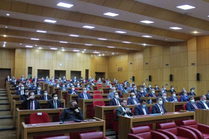 Konuşmasında Covid-19 salgınına önemli bir yer ayıran Vali Ayhan; "Birinci önceliğimiz salgınla mücadele. İkinci önceliğimiz buna paralel bir şekilde eğitim ve öğretim. Uzun bir aranın ardından hem ilköğretimde hem ortaöğretimde toplam 115 bin 593 öğrencimizle hem de yükseköğretimde yaklaşık 48 bin öğrencimizle yüz yüze eğitime başlandı. Eğitim öğretim noktasında sorumluluğumuzun çok daha fazla arttığı aşikardır. Eğitim öğretimin kesintisiz olarak devam etmesini sağlamak durumundayız. Hiçbir okulumuz kapalı değil. Bizim il genelinde 6 bin 500 dersliğimiz var. 6 bin 500 derslikten sadece 314 sınıfta vaka veya yakın temas nedeniyle eğitim öğretime ara verildi. Bunların 245'inin karantina süreleri doldu. Şu an sadece 69 sınıfımızda karantina uygulaması devam etmekte. Orana baktığımızda çok düşük bir rakam olduğu görülmektedir" dedi.