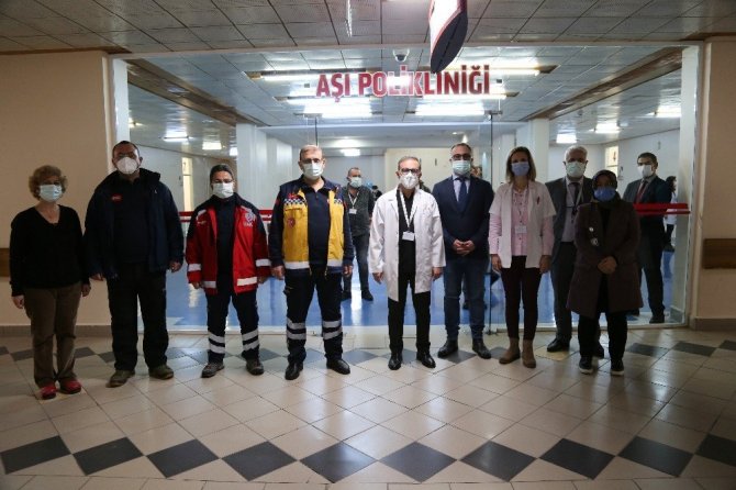Öte yandan Sivas Vali Yardımcısı Yunus Emre Temel, İl Sağlık Müdürü Uzm. Dr. Fethullah Selçuk Moğulkoç, Sivas Cumhuriyet Üniversitesi Başhekimi Ömer Tamer Doğan aşı olan sağlık çalışanlarını ziyaret ederek onlara şifa dilediler.