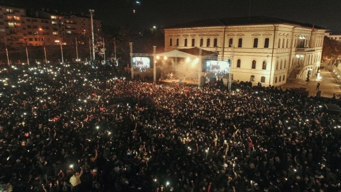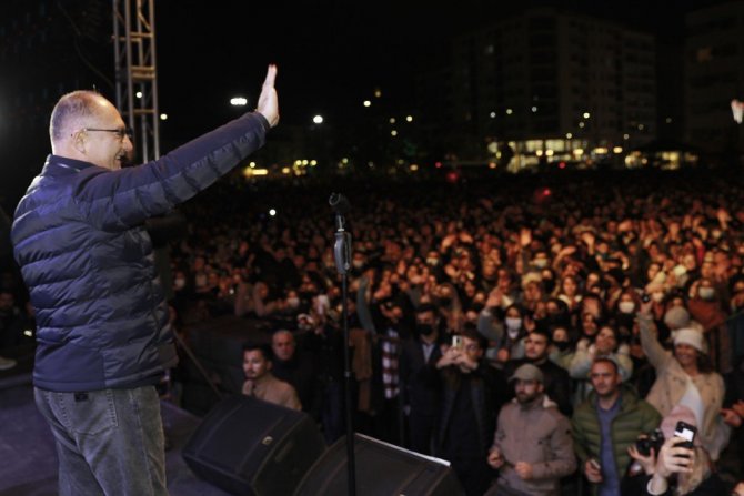 Tarihi Kent Meydanında düzenlenen konserde sahne alan Sonses en sevilen şarkılarını seslendirdi.