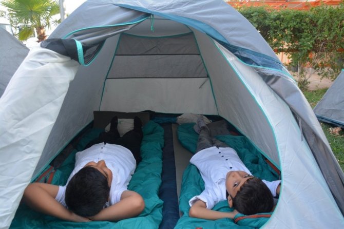 Kamp alanında çadır kurduklarını söyleyen öğrencilerden İbrahim Halil Kılıç, "Arkadaşlarımızla eğlenceli vakit geçiriyoruz. Matrak oyunu oynuyoruz ve çok zevkli. Ok atmayı da öğrendim. Baya eğlenceli zamanlar oluyor. Müzik eşliğinde oynamayı da ihmal etmiyoruz" dedi.