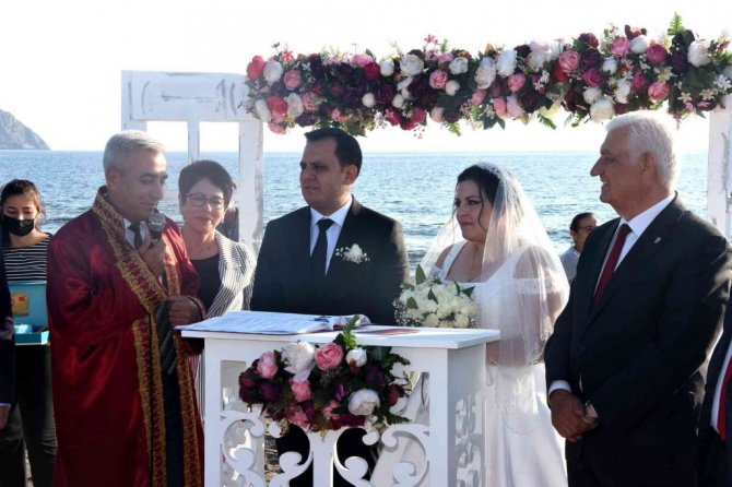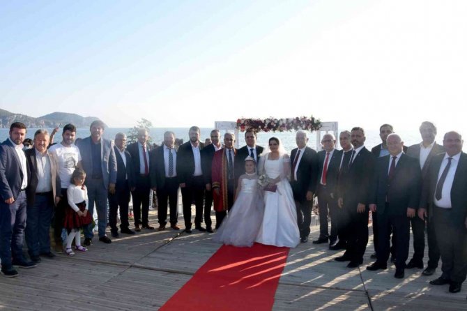 Çiftin nikahını Dalaman Belediye Başkanı Muhammet Karakuş kıyarken, şahitliklerini törene katılan siyasetçiler yaptı.