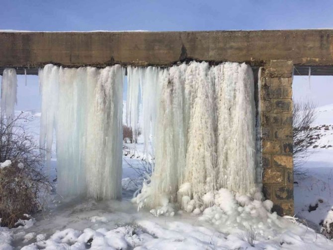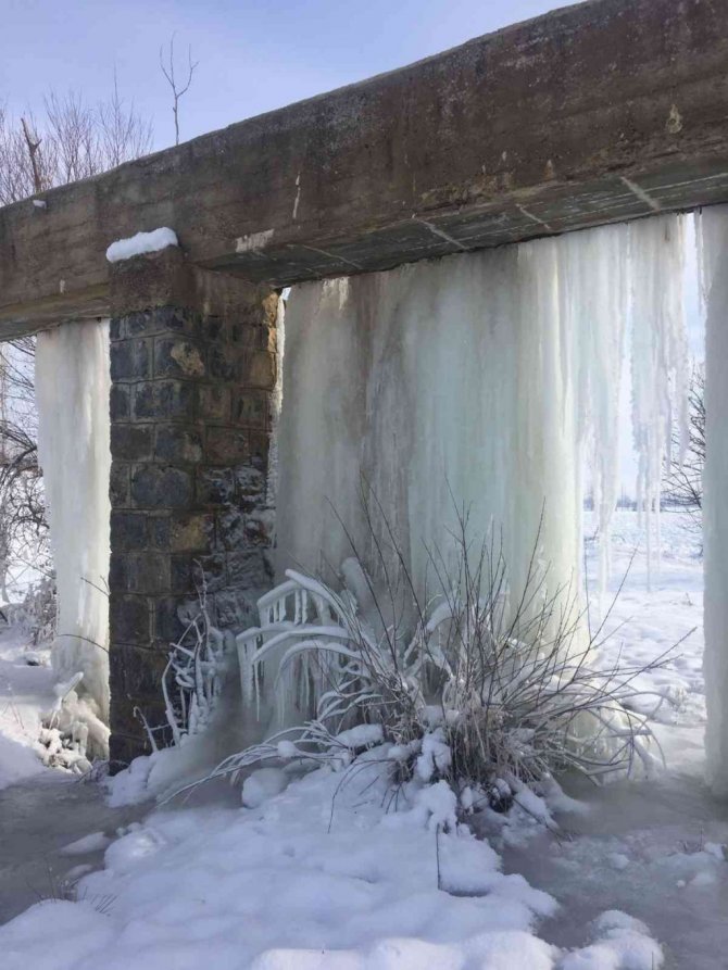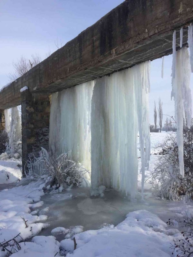Tufanbeyli'de geçtiğimiz günlerde 4 gün yağan kar yağışının ardından başlayan soğuk hava hayatı olumsuz etkilemeye devam ediyor. Hava sıcaklığının eksi 20 dereceye kadar düştüğü ilçede her yer buz tuttu. Sulama kanalından sızan suların oluşturduğu dev sarkıtlar ise görenleri hayrete düşürdü. Vatandaşlar dev sarkıtları cep telefonu kamerasıyla görüntüledi.