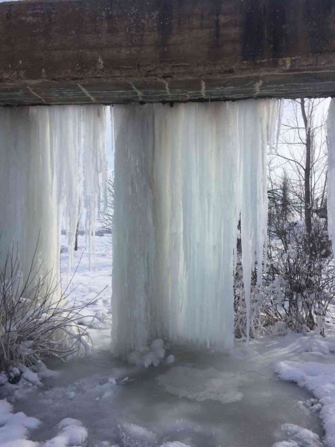 Soğuk hava dev buz sarkıtları oluşturdu