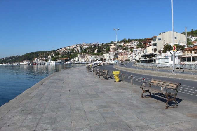 Sokağa çıkma kısıtlaması sonrası Bebek Sahili bomboş kaldı