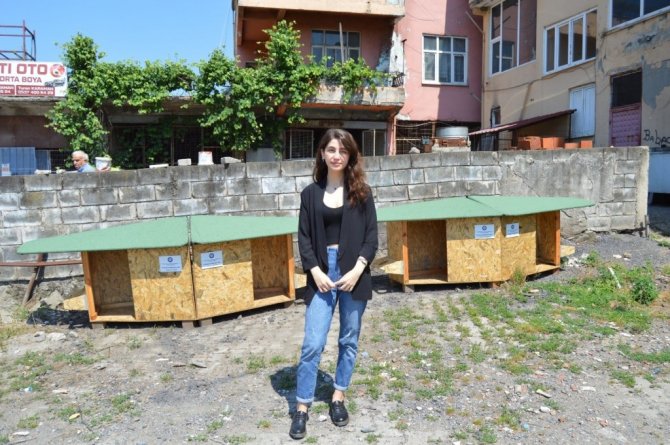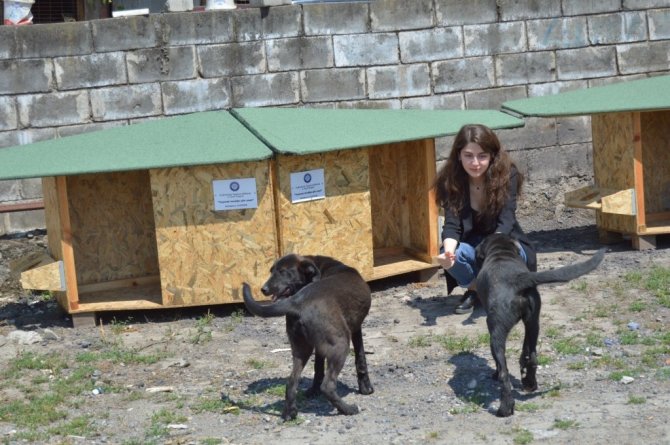 Gazi Üniversitesi Mimarlık Fakültesi öğrencisi Kdz. Ereğlili Melikenur Aydemir, kendi tasarladığı 4 adet köpek evini Süleymanbeyler köyüne yerleştirilmesi...