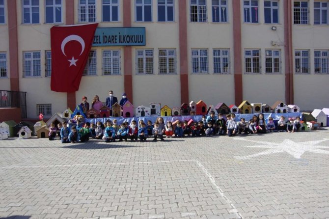 Kütahya 80.Yıl Özel İdare İlkokulu'nun anasınıfı öğrencileri, sokak hayvanları için yuva yaptı.