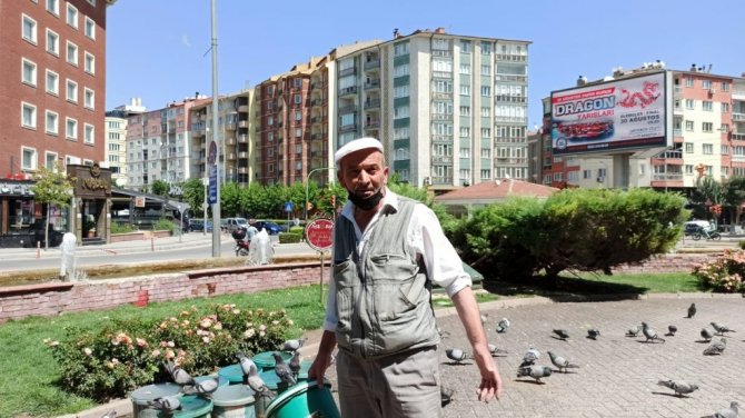 Eskişehir'de yaşayan Sabri Kabaca, 20 yıldır evinin yakınlarındaki parklara kova kova su taşıyarak, sokak hayvanlarının susuz kalmaması için mücadele veriyor.