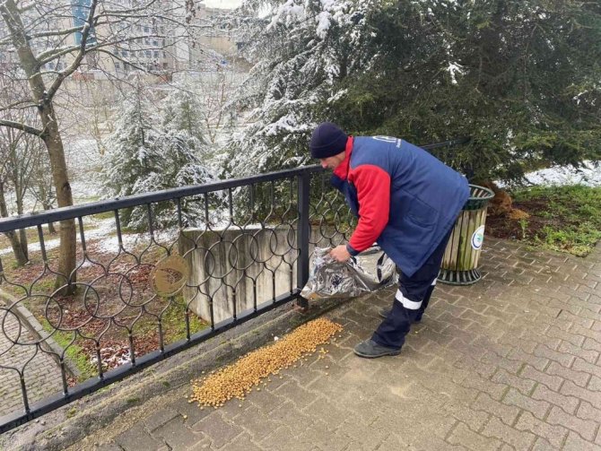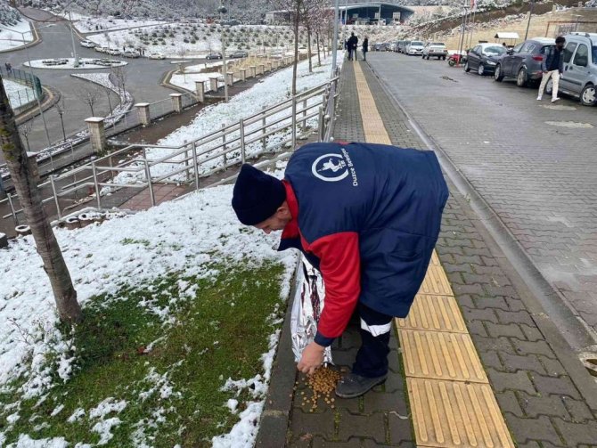 DÜZCE (İHA) – Düzce'de belediye ekipleri, soğuk havalarda yiyecek bulmakta zorlanan sokak hayvanları için mama bıraktı.